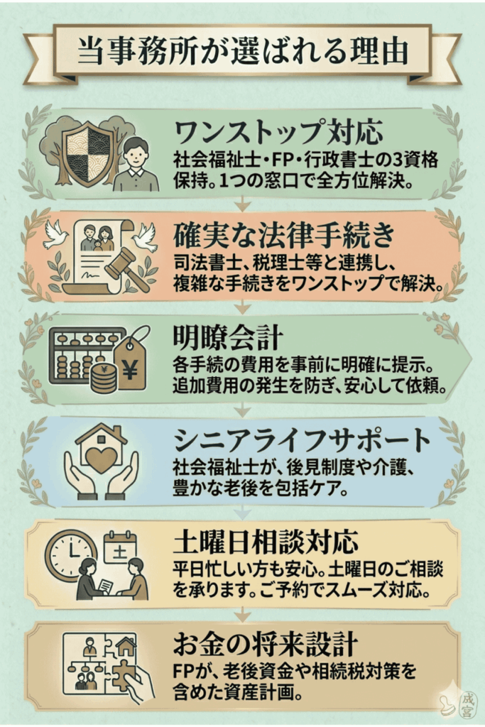 滋賀県彦根市の行政書士成宮事務所です。当事務所では、相続手続きに合わせてプランの最適化を行っております。そのため、依頼者にわかりやすく無駄のないお申し込みが…