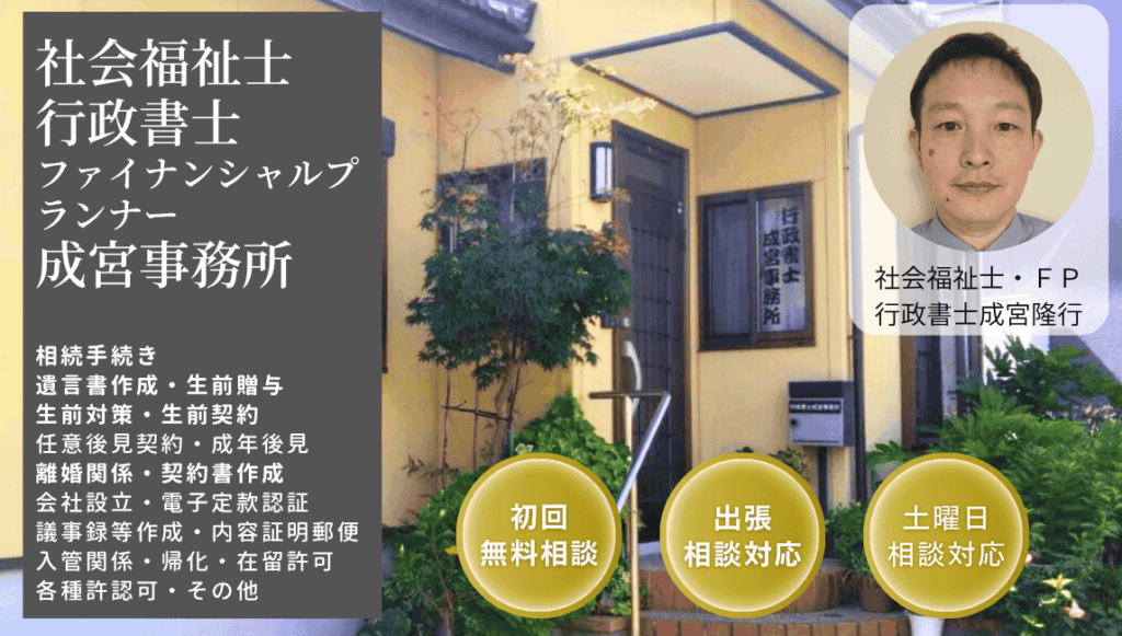 | 事務所名 | 社会福祉士・FP・行政書士成宮事務所 |