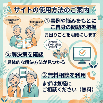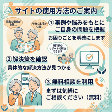 次のような方は当事務所の無料相談を活用ください 今は元気だが、このままひとり暮らしを続けるのは不安だ。 夫婦のみで生活できるか、自分に問題が起きたとき、全てを…