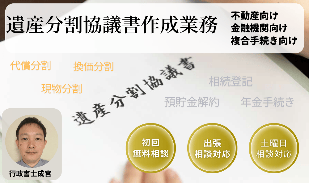 滋賀県彦根市の社会福祉士・FP・行政書士成宮事務所の遺産分割協議書作成業務【全国対応】の紹介ページです。手続きに合わせてプランを選択できるので無駄が無いと思います。