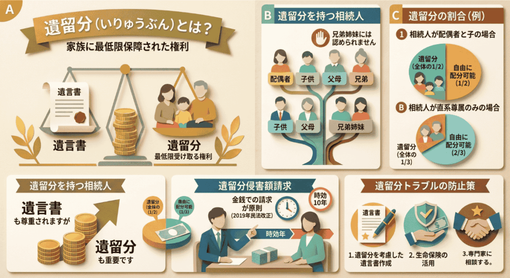 遺産分割がスムーズに進むよう、遺言書の作成段階で専門家に相談し、遺留分に関する対策を講じることが重要です。