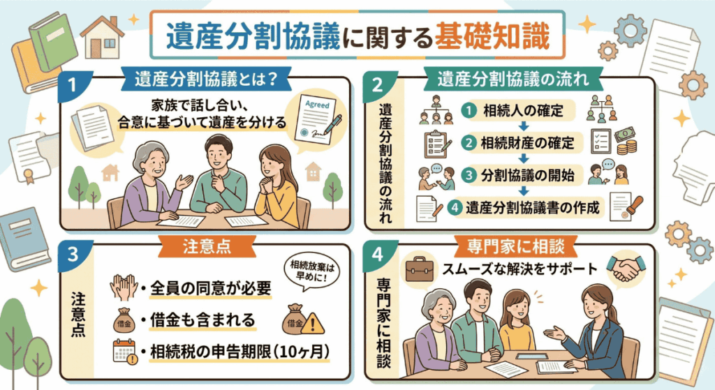 遺産分割協議は、相続人全員が集まり相続財産をどのように分けるかを決定する手続きです。