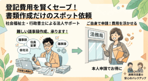 登記には関係なく、会社運営の中では色々な書類作成が必要になりますので、普段から必要な書類の外注先として活用していただくのも良いと思います。